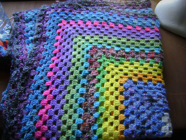 Plaid entièrement réalisé a la main :laines variées filées main (lama ,mérinos,mohair,gotland)