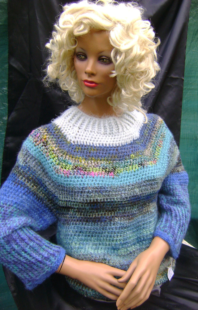 Pull en Lama et col mohair dégradé de bleu taille L